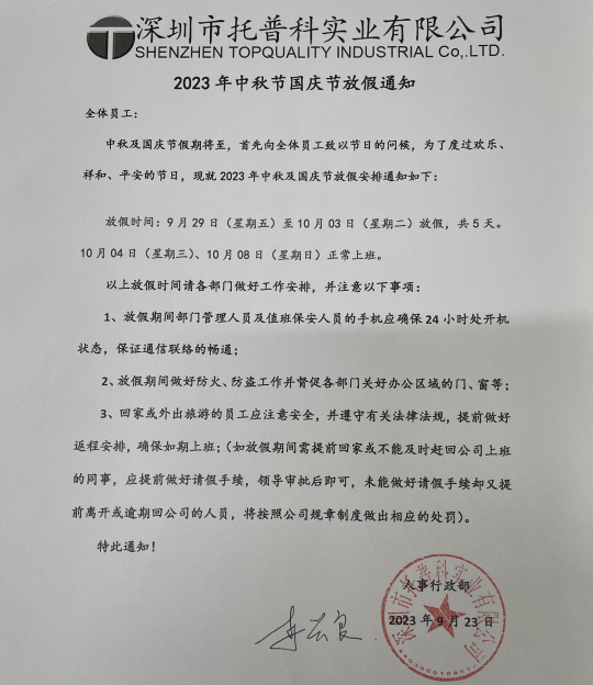 根據(jù)國家放假安排及結合公司實際情況,現(xiàn)將放假通知公布如下: