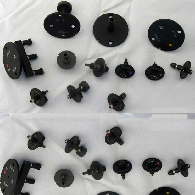 吸嘴形狀有方孔,圓通,V槽等。訂做的吸嘴,一般根據(jù)料的形狀,選取平整的吸著點(diǎn),有些做成伸長(zhǎng)的吸嘴,伸進(jìn)料的凹槽平面吸取,有些根據(jù)料的邊緣,做成回字型,有些兩端用平面,中間不平,則要搭個(gè)橋。有些料有粘性,不好放料,則要在吸嘴壁開(kāi)些槽,或是做成膠頭。