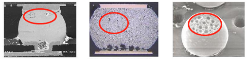 電路板回流焊接后,熱熔冷卻后的焊點內(nèi)存在空洞,就像氣泡一樣,如下圖紅圈所示