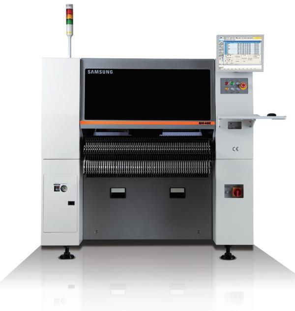 Samsung三星貼片機SM482 是在高速貼片機SM471的平臺基礎上針對異型元器件對應能力進行強化的,配有1個懸臂6個軸桿的泛用機,最大可貼裝□55mm IC,支持Polygon識別方案,并且針對形狀復雜的異型元器件提供最優(yōu)的解決方案
