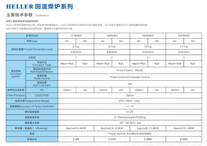 美國HELLER無鉛回流焊,HELLER垂直固化爐,HELLER真空回流焊設(shè)備。有HELLER 1809MK3、HELLER1913MK3、HELLER1936MK5、HELLER1707MK3、HELLER1807mk5、HELLER1826MK5、HELLER回流焊2043MK5等全系列產(chǎn)品,HELLER回流焊是進(jìn)口回流焊性價比最高的回流焊,HELLER回流焊節(jié)能高效。